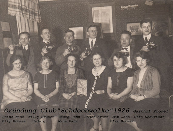Ihre Mitgliedschaft wurde mit einem Bierglas mit Aufschrift Club „Schdoobwolke“ und Initialen untermauert.